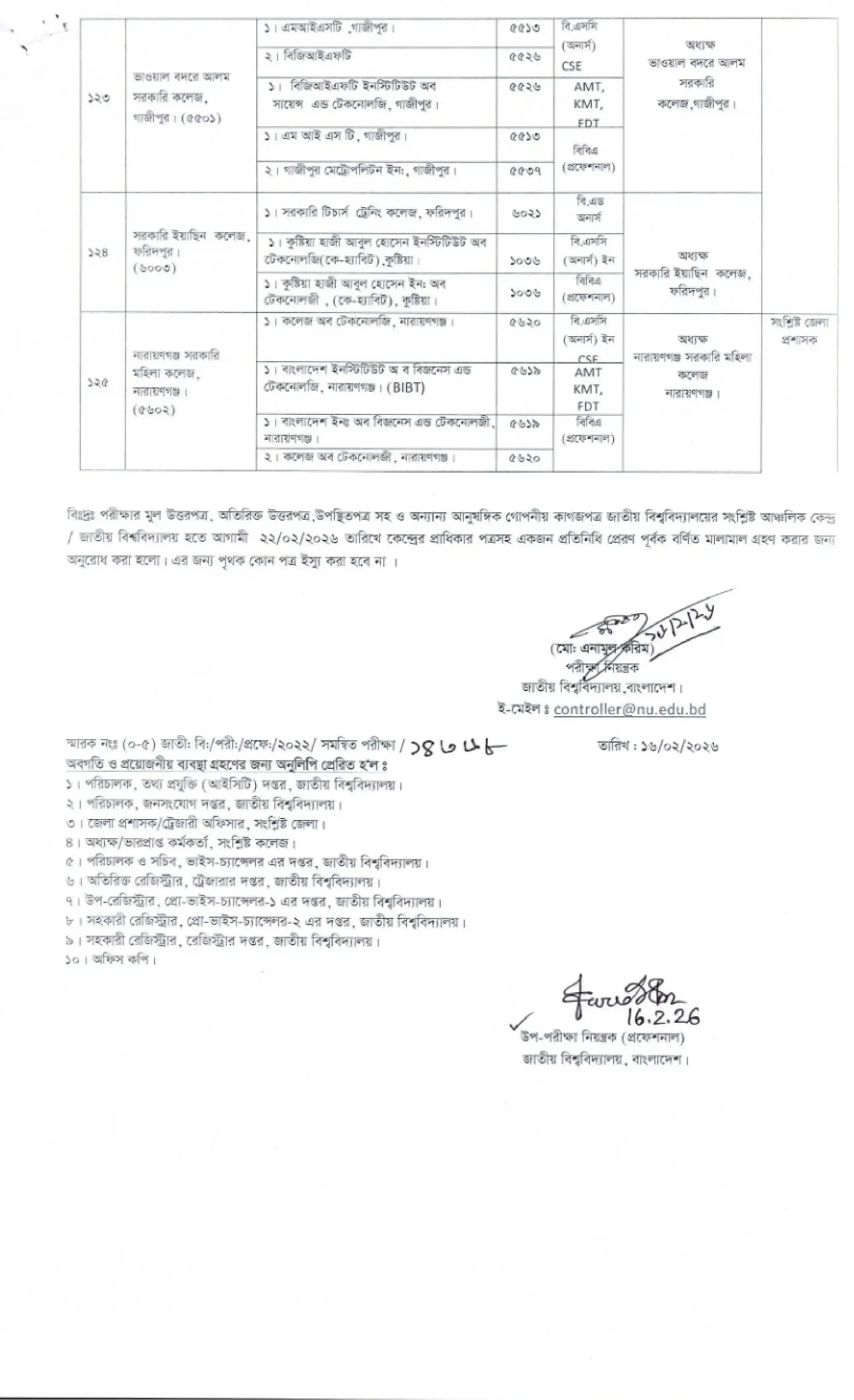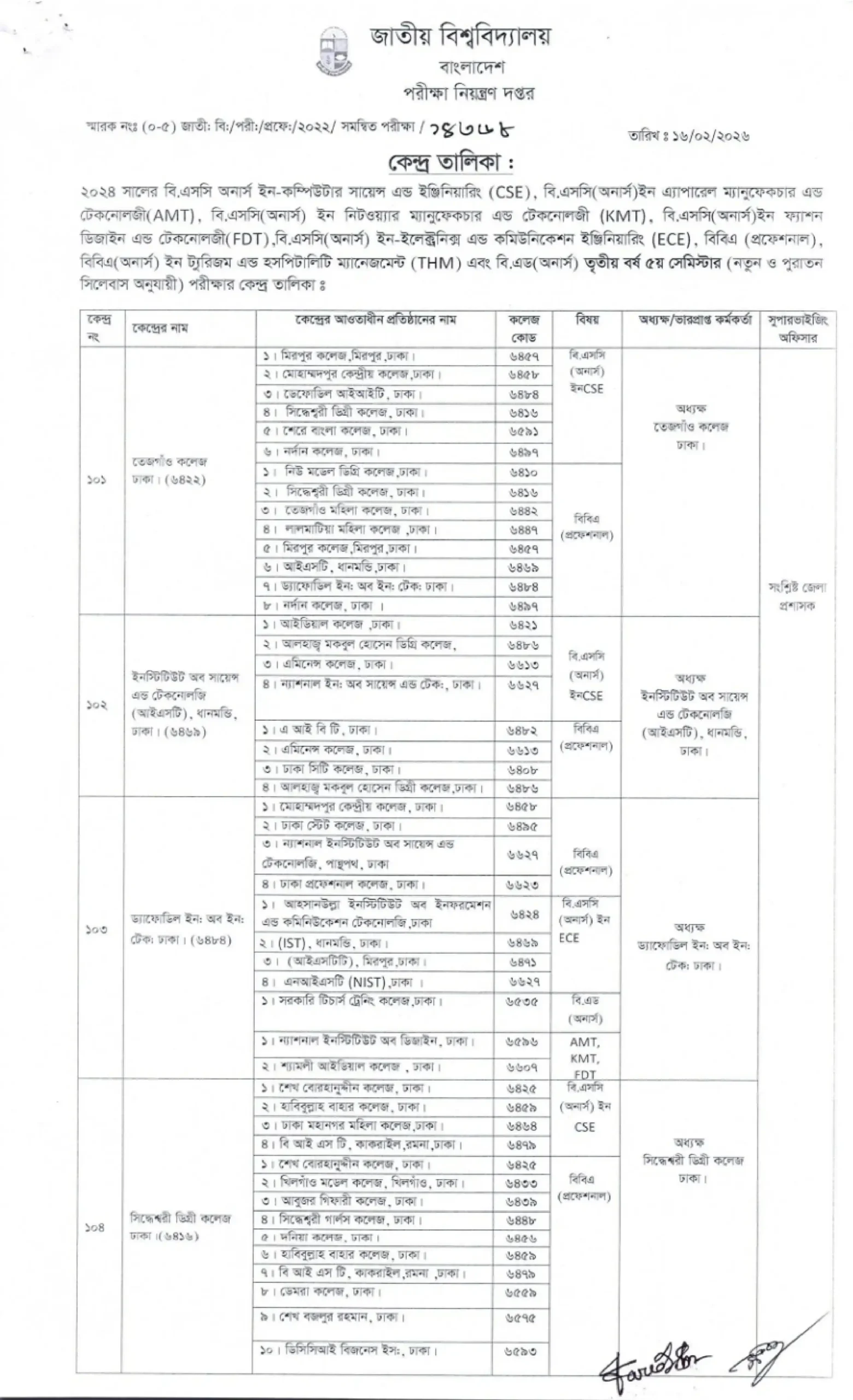 জাতীয় বিশ্ববিদ্যালয়ের ৩য় বর্ষ ৮ বিষয়ের পরীক্ষার কেন্দ্র তালিকা ২০২৬